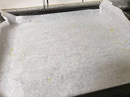 烤盤上舖烘培紙,紙上抹點油,烤好後餅皮比較酥脆。
