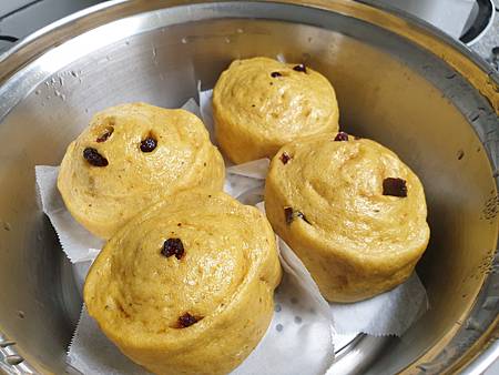 因為OBS沒有大蒸籠,發酵好的麵糰用電鍋與不鏽鋼鍋分批各蒸10分鐘。