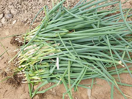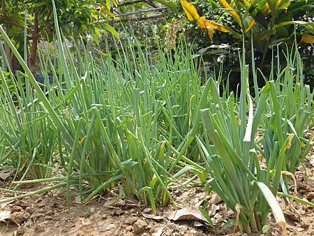 OBS娘親的菜園裡有小小一畦蔥,資深女兒賊我偷挽蔥很有技巧,從每一叢蔥分出幾根小心拔出來,把土撥好,再澆澆水,這樣就看不出來蔥叢被偷襲過,而且還可以繼續生生不息。