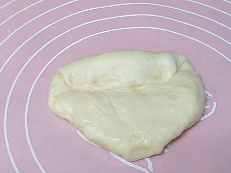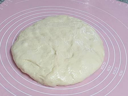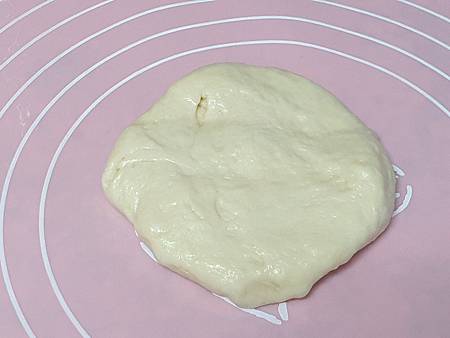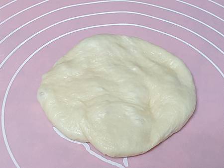 擀麵墊和手都抹點油,將麵糰輕輕壓扁。