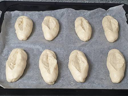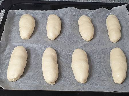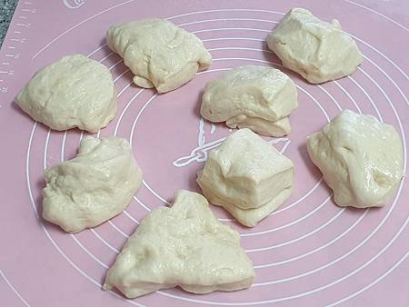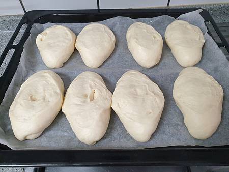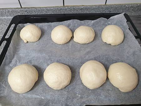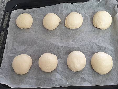 將8個小麵糰都整形好,要留發酵膨脹的空間。