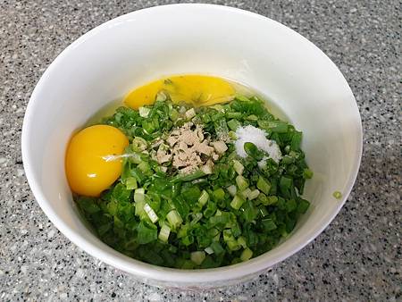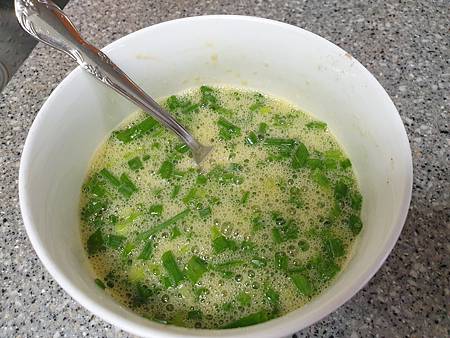 先把蔥洗淨放置一旁讓水分自然陰乾。