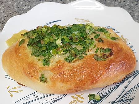 我的大學小天使說她高中時學校附近有一家麵包店,放學時正好是麵包出爐的時候,她走過就會買一塊香噴噴的蔥麵包,趕快傳一張照片讓她視吃一下。
