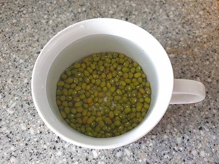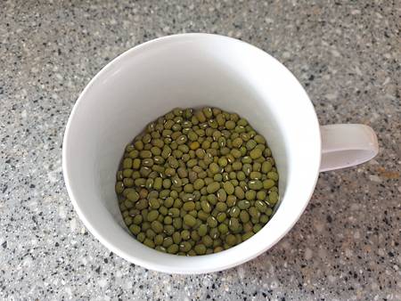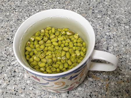 泡水8小時後,綠豆已膨脹,都超過半杯了!