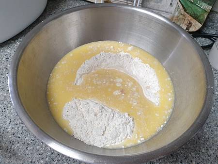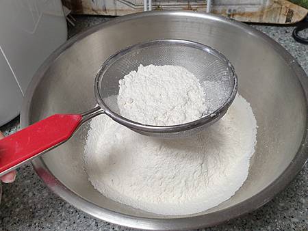 麵粉過篩(看烘培高手如此做,不過好像沒過篩也是可以的)。