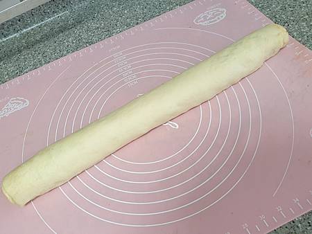 揉好麵糰後將麵糰擀平成一長方形。