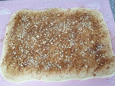 撒上一層切碎的核桃,可以用擀麵棍擀過壓實,防止碎核桃脫落。