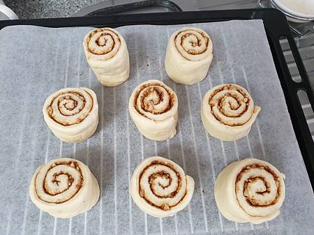 將肉桂捲放進烤箱內靜置發酵30分鐘。