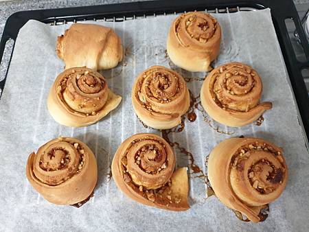 肉桂卷出爐,屋裡有濃濃的黑糖肉桂香,當然,也有肥膩膩的奶油香。