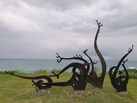 這是在石雨傘風景區的『跳舞的風』,以鐵板、鋼筋形塑如風吹過海岸,樹梢在跳舞,海岸捲起千堆雪的萬物生命律動。