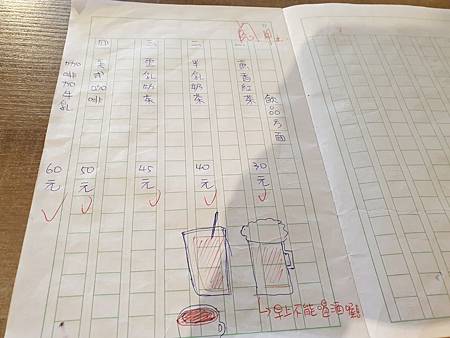 店內菜單是用作文本手寫,非常有童趣,紅筆附註也是超可愛的。
