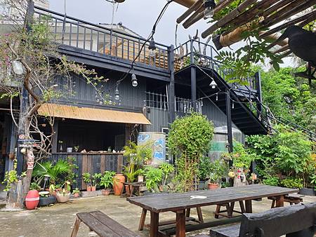 後院座位區左後轉便是通往二樓露台的樓梯。