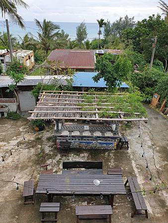 上了二樓露台便可俯瞰民宿後院及遠眺大海。