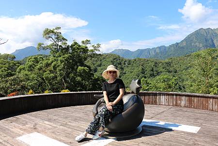花園中這個木棧道通往前面的『夢想起飛亭』,亭中的座位區景觀極好,不過我們沒選這座位區,因為考量身邊經常會有遊客路過打擾,還是將網美座位讓給別人好好拍照吧!