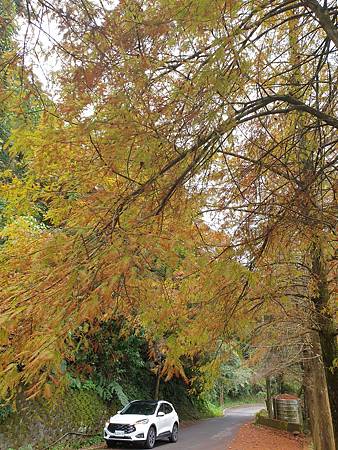 此次露營一路驚喜,到露營區途中迎面而來一排漂亮的水杉,老爺二話不說,立馬停車讓我拍個高興。