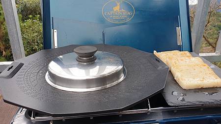 剛入手的新玩具~燒烤盤,蓋上鍋蓋煎鍋貼。