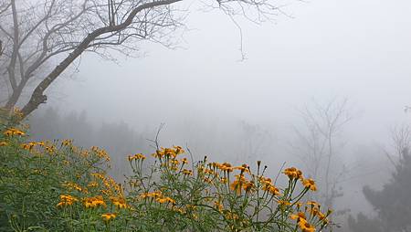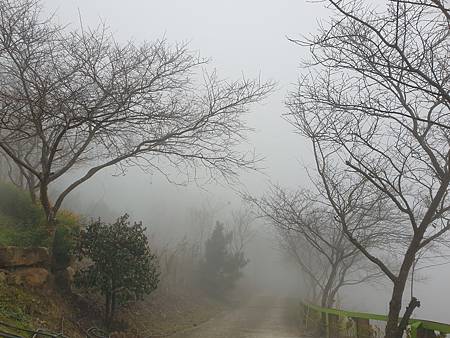 我們離開營區時霧更濃了,可見度很低,車速極慢。