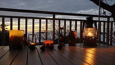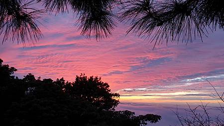 第二天早上的景觀如前一天,不過檢查過晚上拍的夜間雲海縮時錄影才發現,整個晚上我們安靜地睡覺時,天上的浮雲和山谷的雲海可是風起雲湧地沒閒著喔!