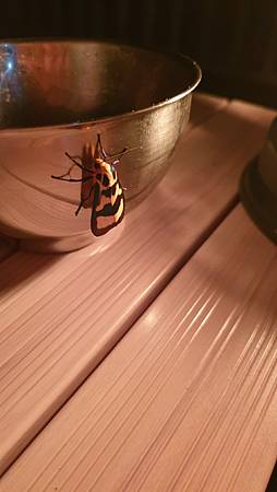唉,為了不讓牠們繼續撲火,憐蛾不點燈,只好趕緊學古人熄掉所有的蠟燭與煤油燈,只開一支迷你手電筒,近乎摸黑的繼續吃完晚餐。