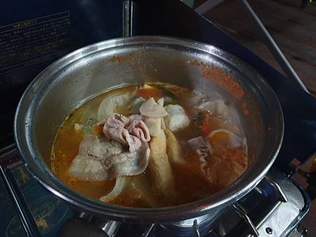 野外夜涼如水,簡單煮一蕃茄鍋,寒夜有熱湯就很幸福了!