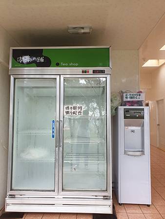遊樂區旁是衛浴、飲水機、和冰箱。