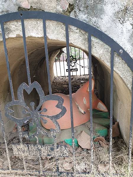 外牆上突出似煙囪的柱體上面有個可拉開的小圓鐵門,不知是何用途,通訊?通氣?