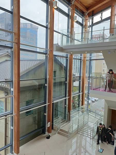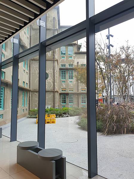 本館旁緊鄰的是側館,從新穎的玻璃帷幕可以透視老舊的側館建築,也有新舊交融的用意。