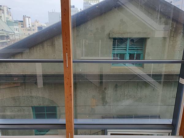 站在本館內,窗外的側館舊牆上倒映出訪客在本館上下樓梯的身影,孰真孰幻?孰新孰舊?