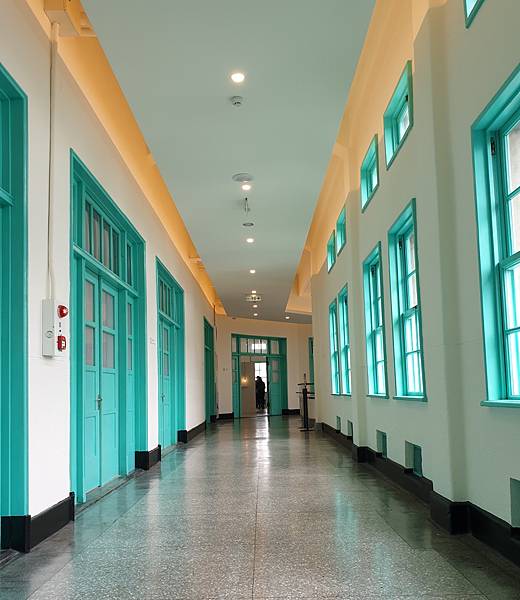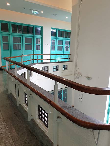 古蹟棟的迴旋磨石子樓梯與廊道造型優雅。