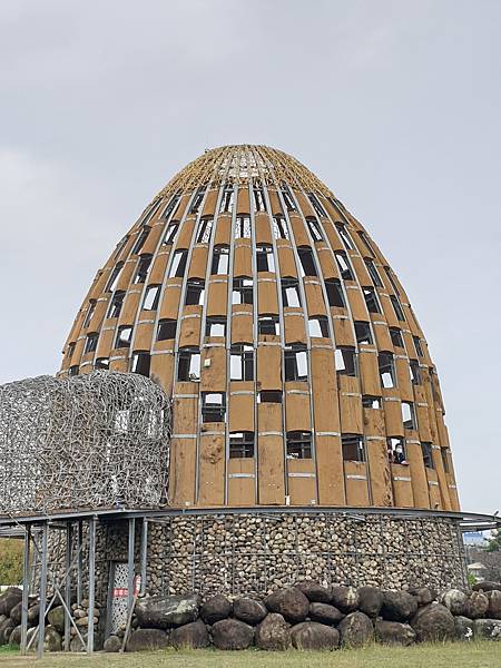 形如小巨蛋般的裝置藝術,以銅和木材一木一窗錯落出如馬賽克般的外殼。