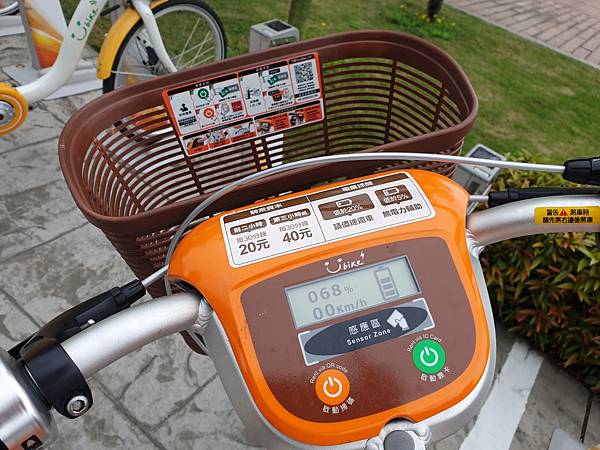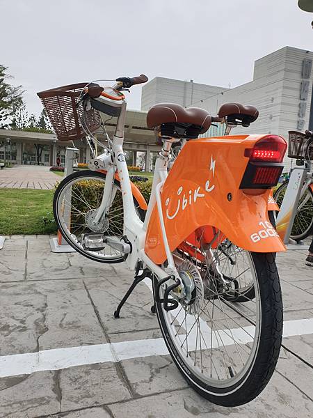 小妞透過APP查到美術館旁蘭井街路邊的單車站有三部電輔助車,不過我們取車時僅有一部,而且沒電了,只好騎一般的Ubike。