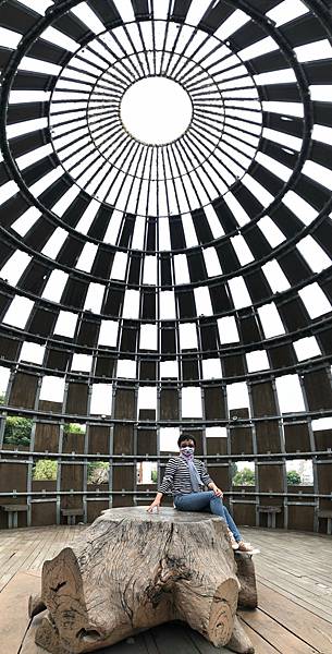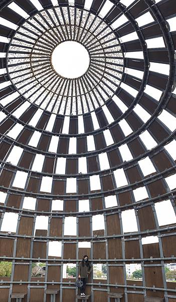 從鏤空的『蛋殼』裡,抬頭可透視上方天空的日月光雲,從四面則可欣賞不同方位的風景。