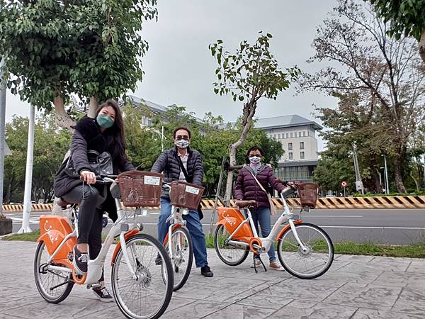 從森林之歌往噴水池移動時,終於讓我們等到YouBike 2.0E了,而且夠我們仨一人一台。