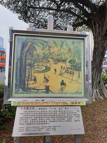 此幅『中央噴水池』描繪出了當時中央噴水池的繁榮景象,無論一人、二人、或三人的組合,都有生動的描繪。