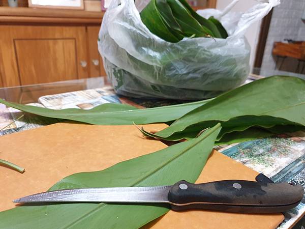 今年娘家菜園裡的月桃葉又大又美,更沒遭蟲咬,趁回娘家之便剪了約40葉,先從OJS和孩子們愛吃的台南粽試身手。