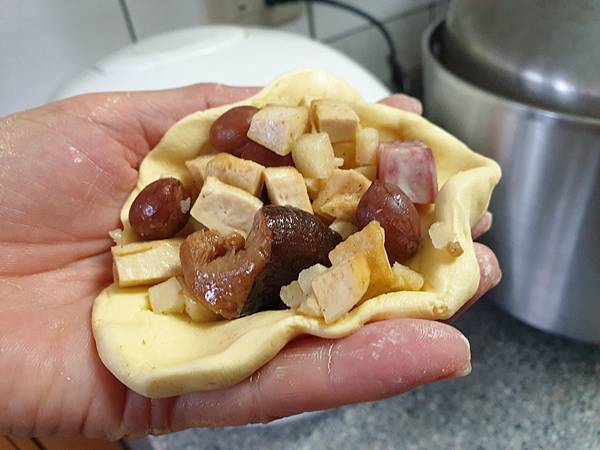 餡料準備好後就可以開始做粿粽的『粄』了。