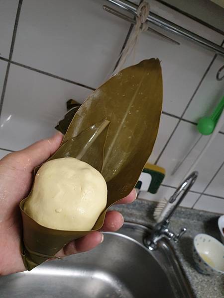 粿粽應該是包粽的入門款,跟小孩兒玩黏土一樣,先將糯米糰搓成一球。
