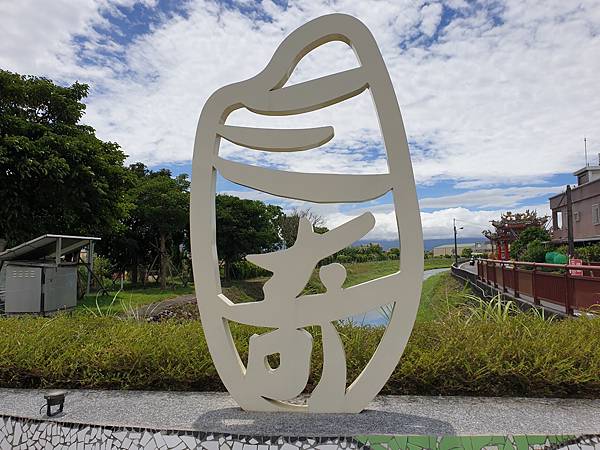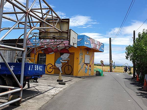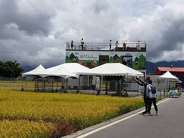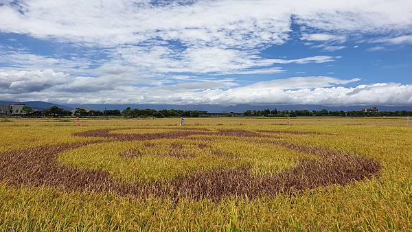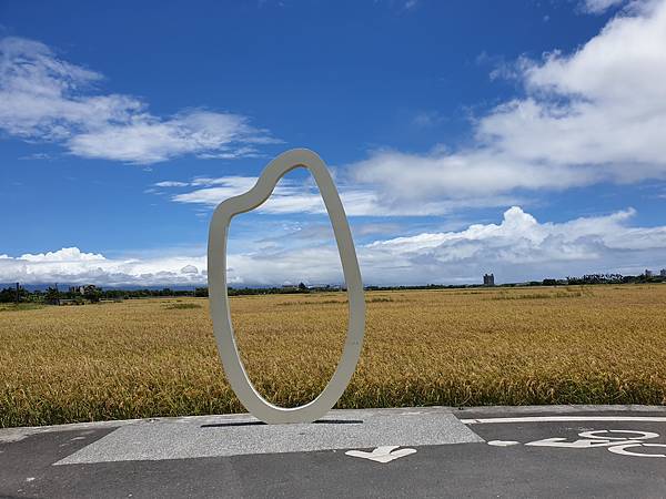 路口這個稻米標誌搭配藍天白雲下的黃金稻田,吸引很多遊客佇足欣賞、拍照、打卡。