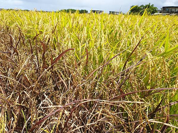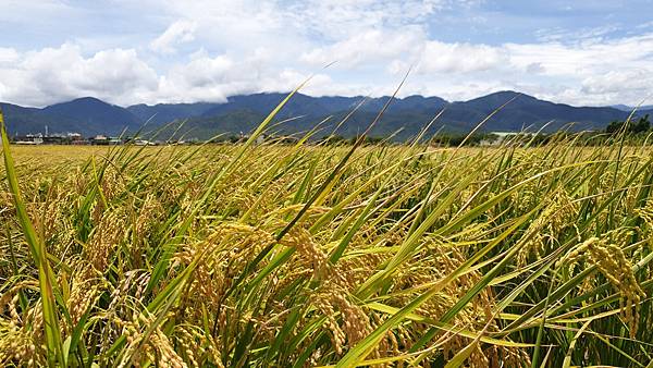 稻子收成前,稻穗金黃飽滿,此時若有微風吹拂,稻田裡的黃金稻浪便成季節性的天然美景。