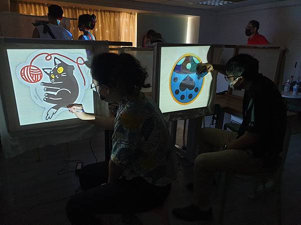 這種藝術工作挺累人的,中場起身活動一下筋骨,欣賞一下大家認真創作的模樣。