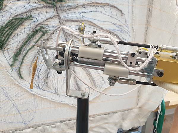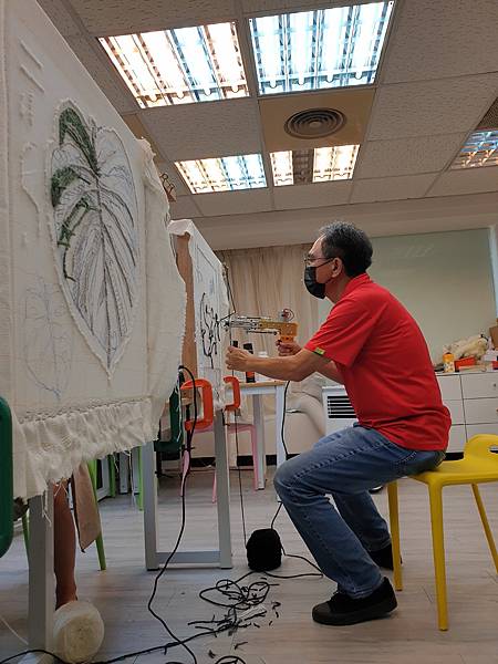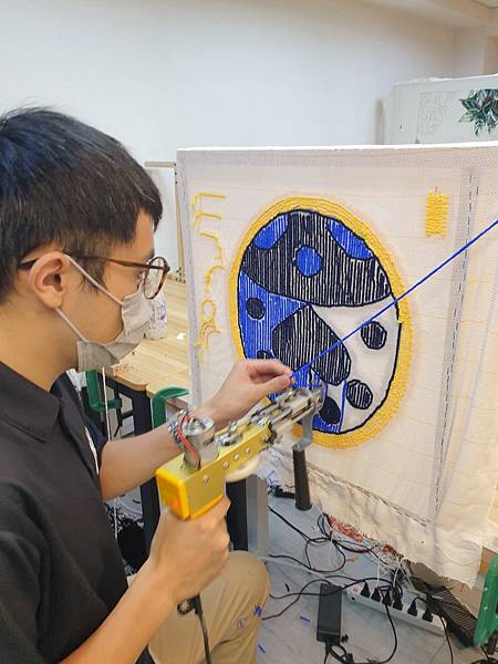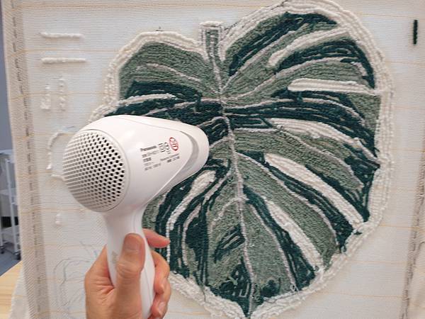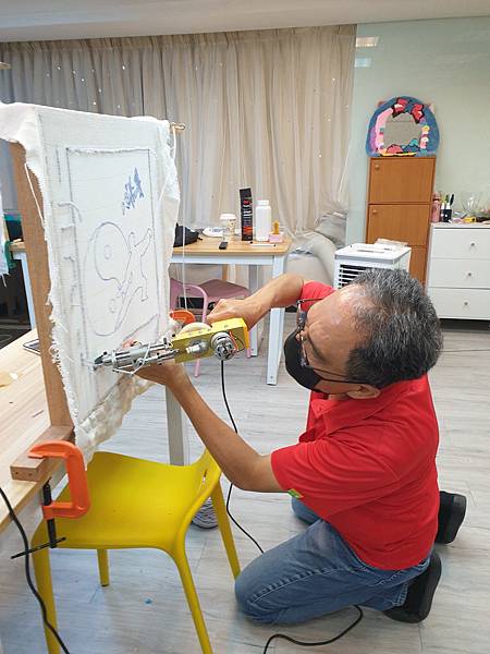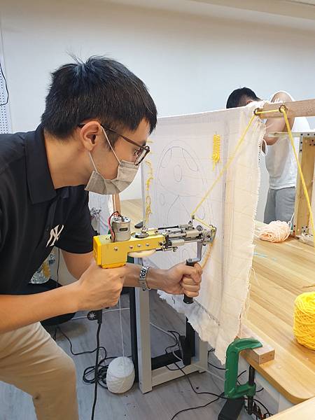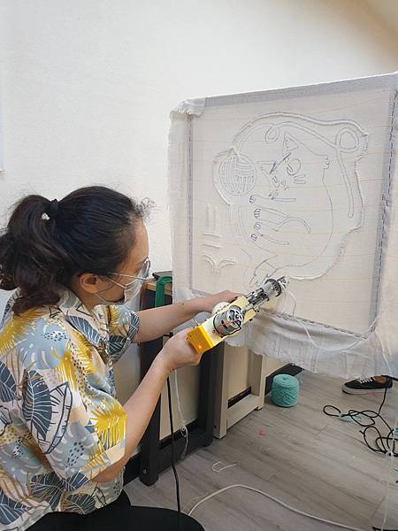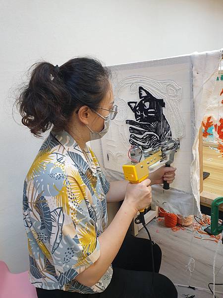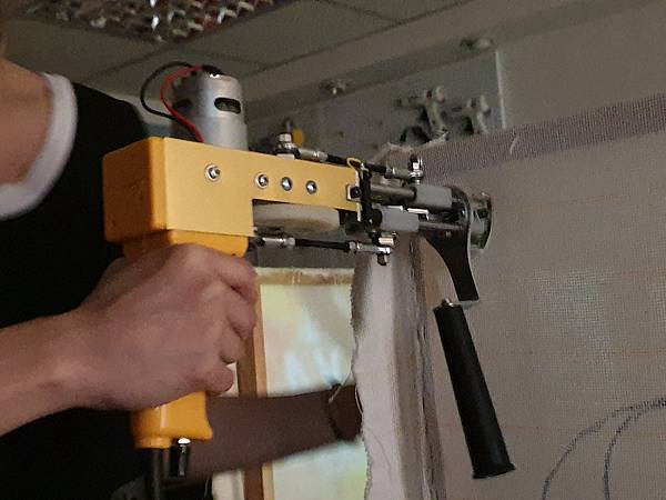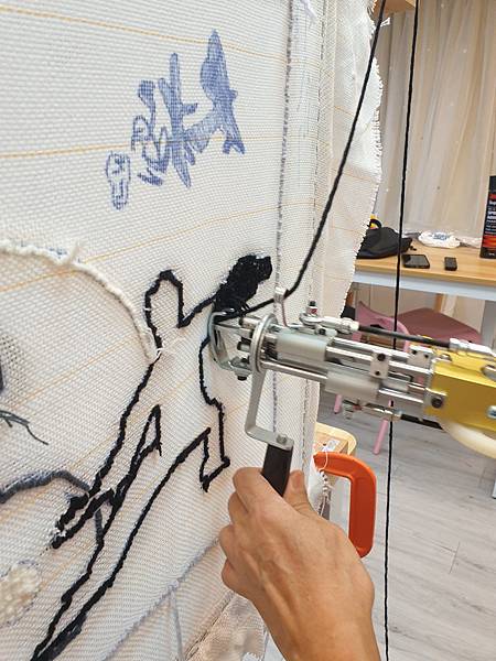 頗有重量的簇絨槍舉起來,在圖形外圍的空白布面練習幾槍後,正式開工了!