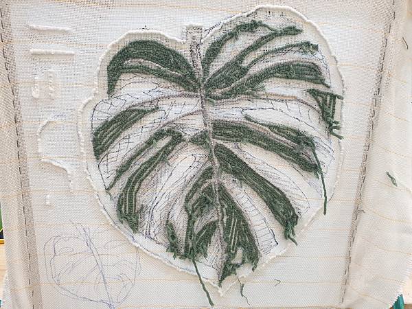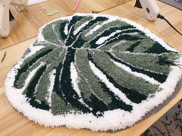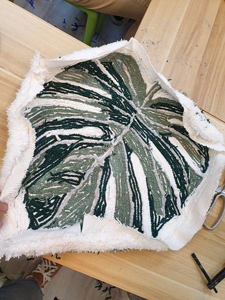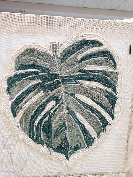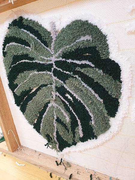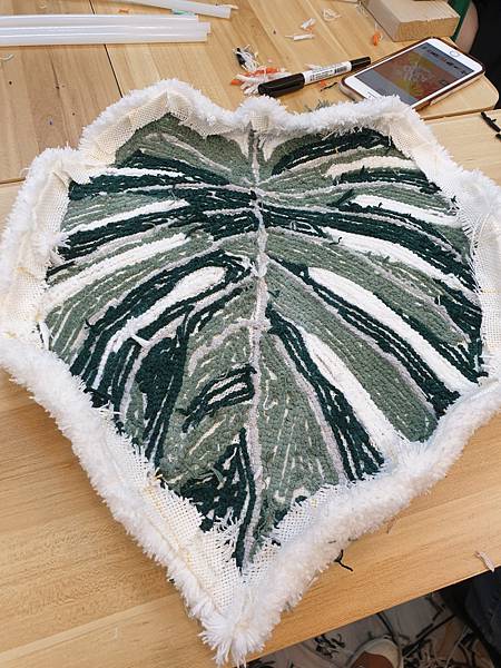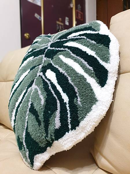 我的人生第一件全手工龜背芋葉子簇絨毯抱枕!
