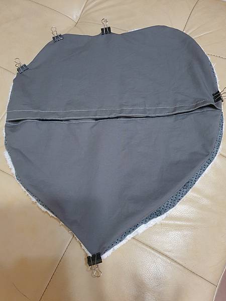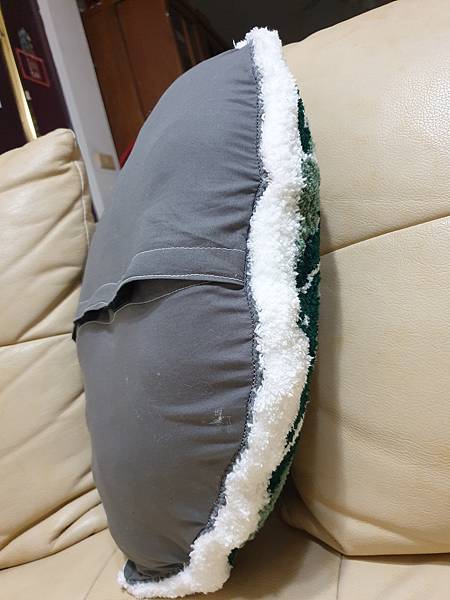 抱枕開口那面剪出上下兩片交錯,重疊處車了魔鬼氈。
