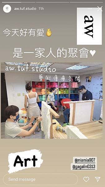 當天簇絨毯手作工作室的IG限時動態特別註明我們是有愛的一家人呢!