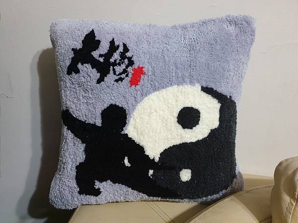 雖說太極圖和龜葉沒什麼關聯,用一樣的抱枕套總是異中求同、看起來像是成對的一組抱枕吧!