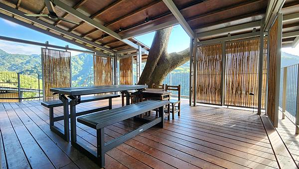 陽光透過大樹和竹子的縫隙灑進樹屋裡,坐在這裡眺望對面的山谷,身心愉悅。