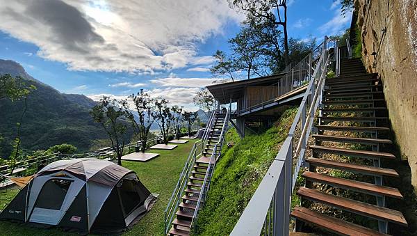 整齊的木棧板、細心養護的草皮、高架的衛浴與觀景平台,看得出營主的用心與巧思。