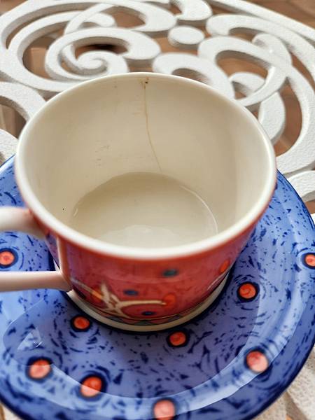 美好的早晨唯一美中不足的是:最適合帶出門的精緻小巧咖啡杯被我不小心一磕,磕出裂痕了,心疼啊!
