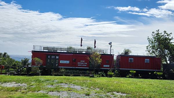 坐在火車廂頂的咖啡座欣賞海景視野應該不錯,可惜不是營業時間。