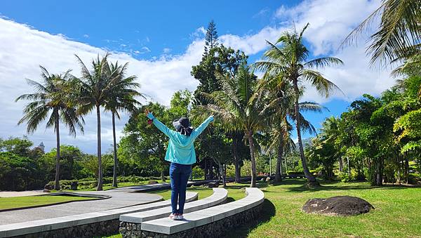 從石碑處往上走,園區景觀頗有熱帶浪漫風情。